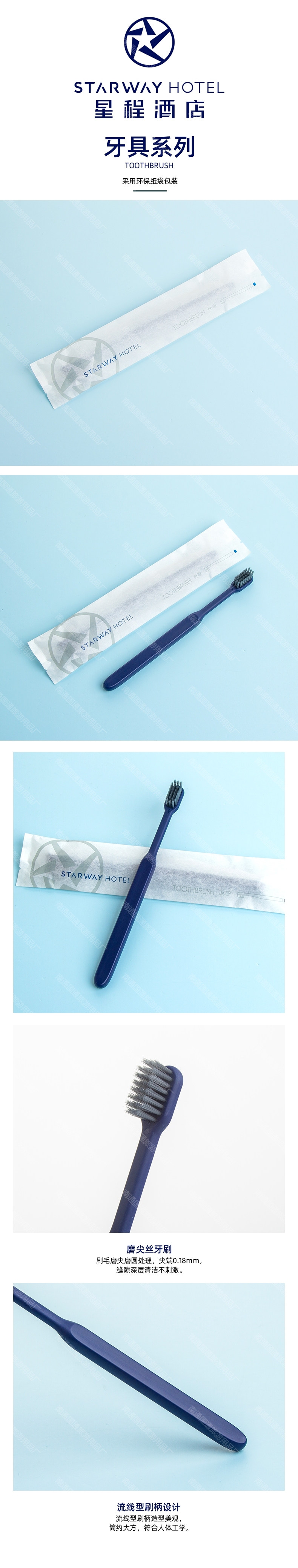 牙刷 磨尖丝 蓝色 11g 100支/包 星程